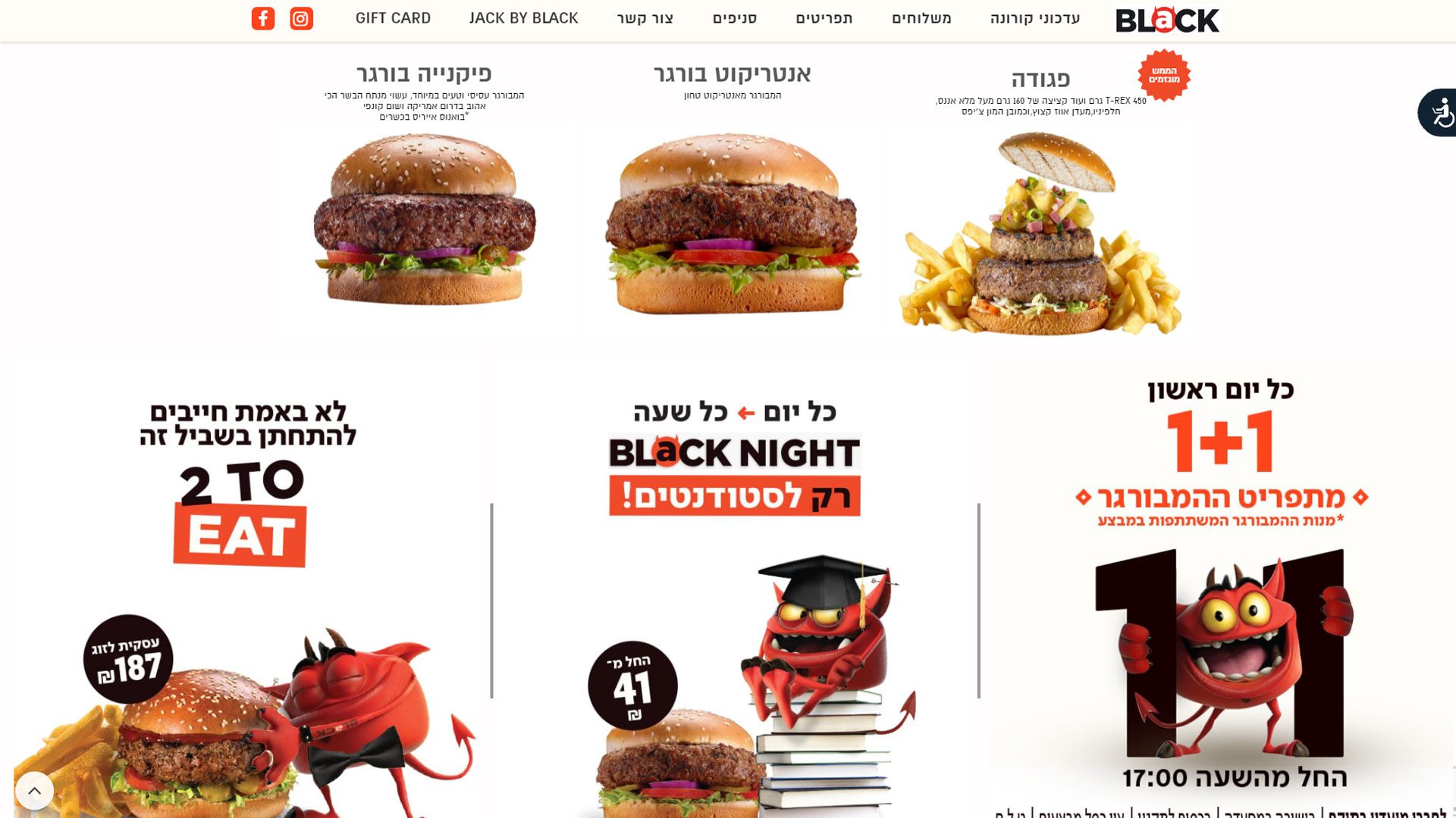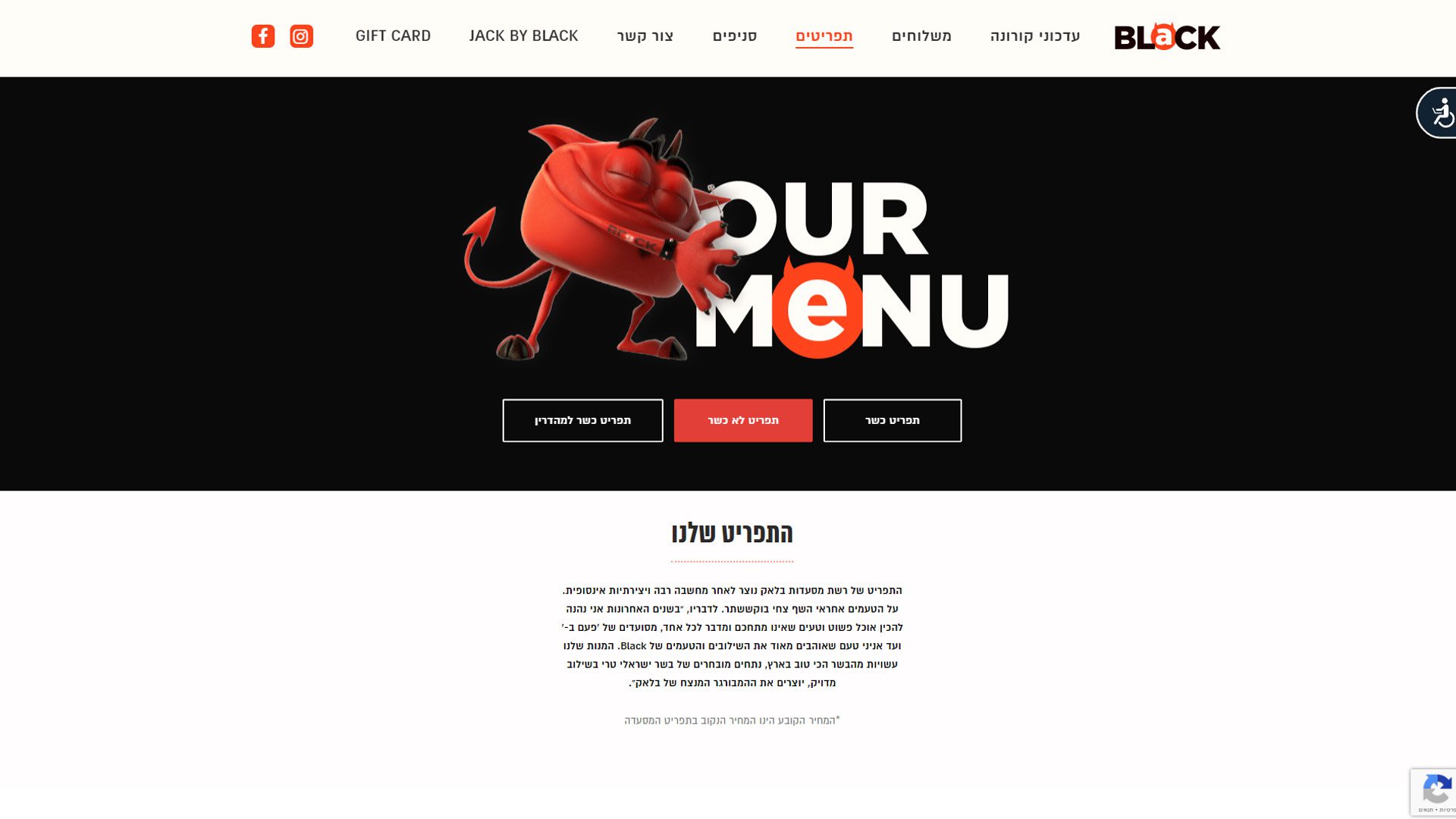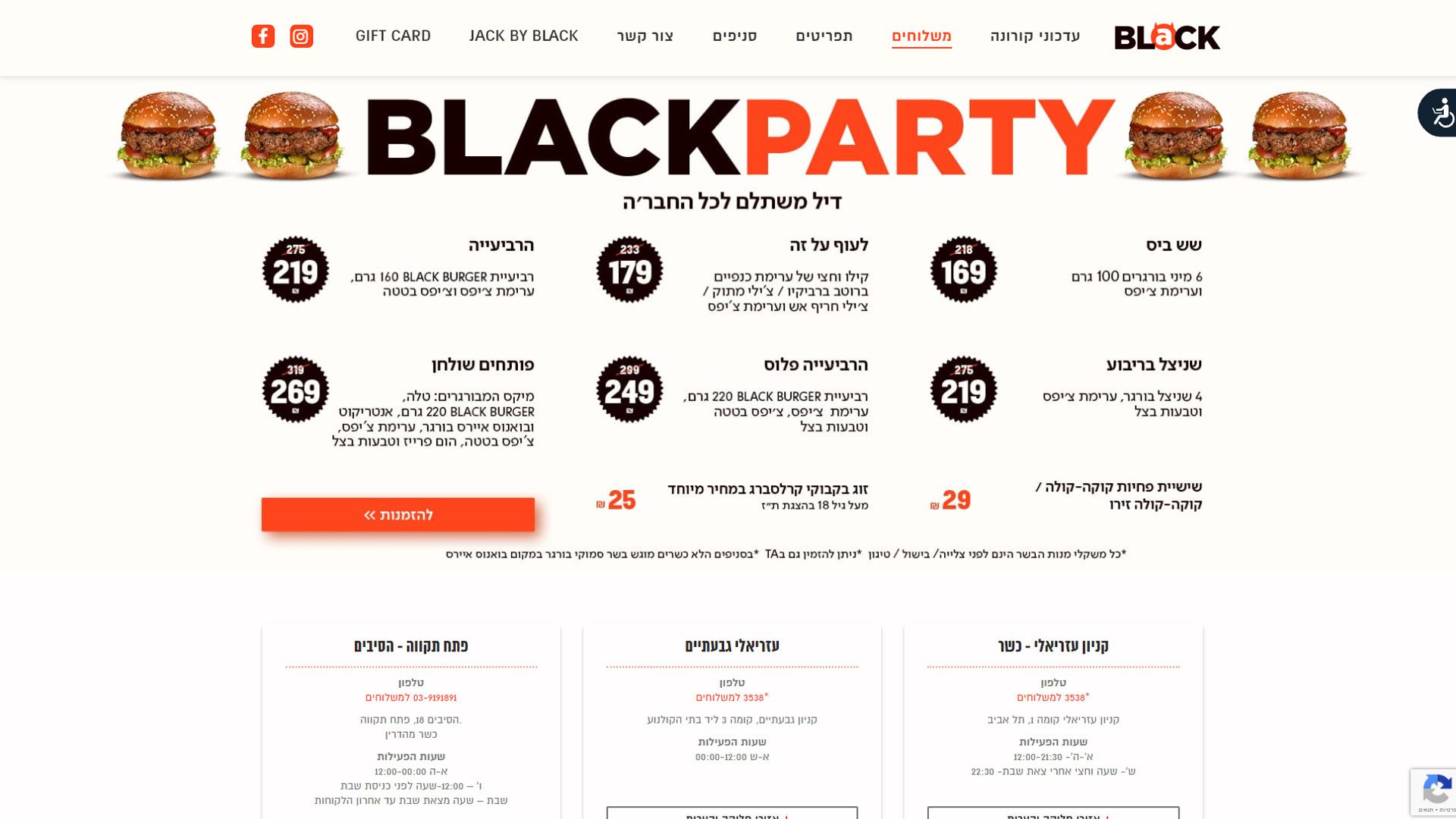 הפקת אתר וורדפרס רספונסיבי לרשת בלאק הייתה חוויה מהנה במיוחד !! לרשת מספר רב של סניפים ומגוון רחב של תפריטים והאתגר בפרויקט זה היה להציג הכל בצורה נוחה וידידותית למבקר באתר. האתר מגרה חושים ומעורר תיאבון, אז כנראה שאחרי תבקרו בו להתרשמות אתם לא תוכלו להתאפק ותלכו לבלאק !!